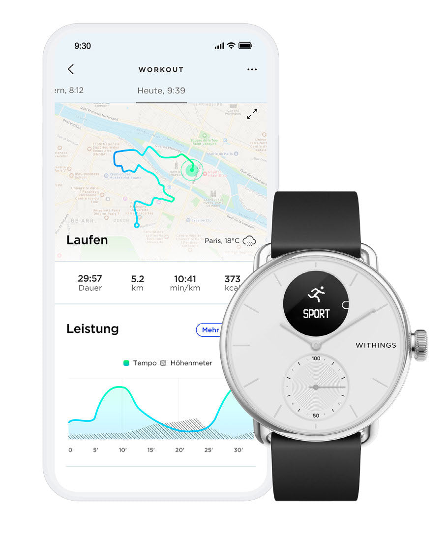 In Kombination mit den proprietären Algorithmen von Withings kann Ihnen diese Hybrid Smartwatch äußerst wertvolle & präzise Gesundheitsdaten liefern, welche Sie zum Beispiel an Deinen Arzt weitergeben können.